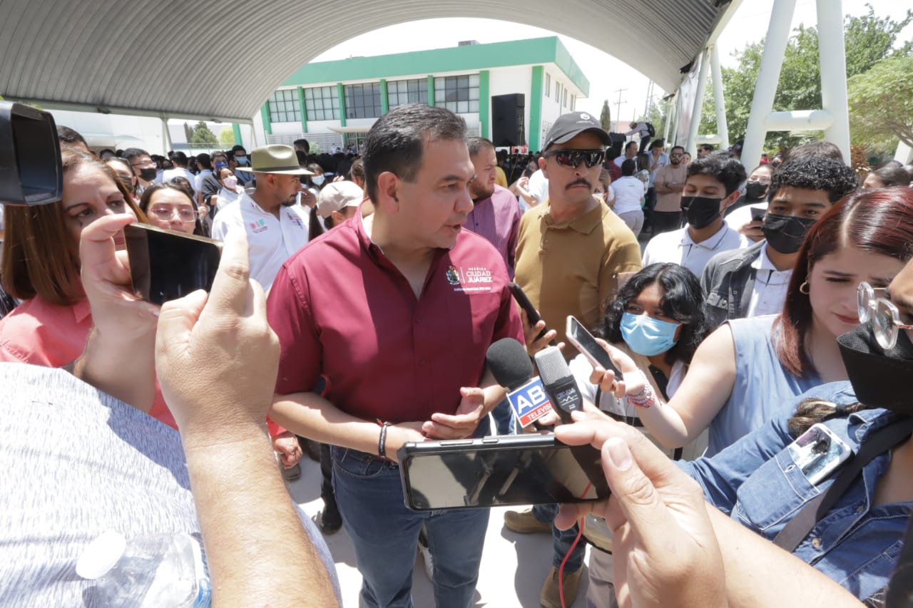 ??Es también una invitación a los jóvenes todos podemos poner un granito de arena para tener un mejor Juárez, a lo mejor si vemos basura levantarla, el frente de nuestra casa, somos una gran ciudad, somos una potencia económica del país, ustedes son una potencia educativa en el estado, entonces tenemos que empezar a construir la ciudad que nos merecemos?, señaló.