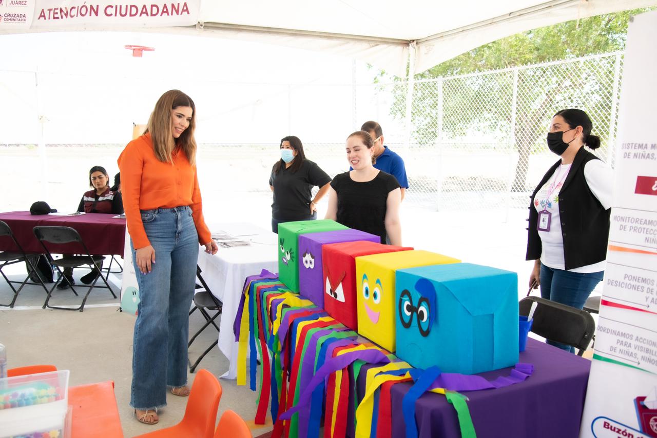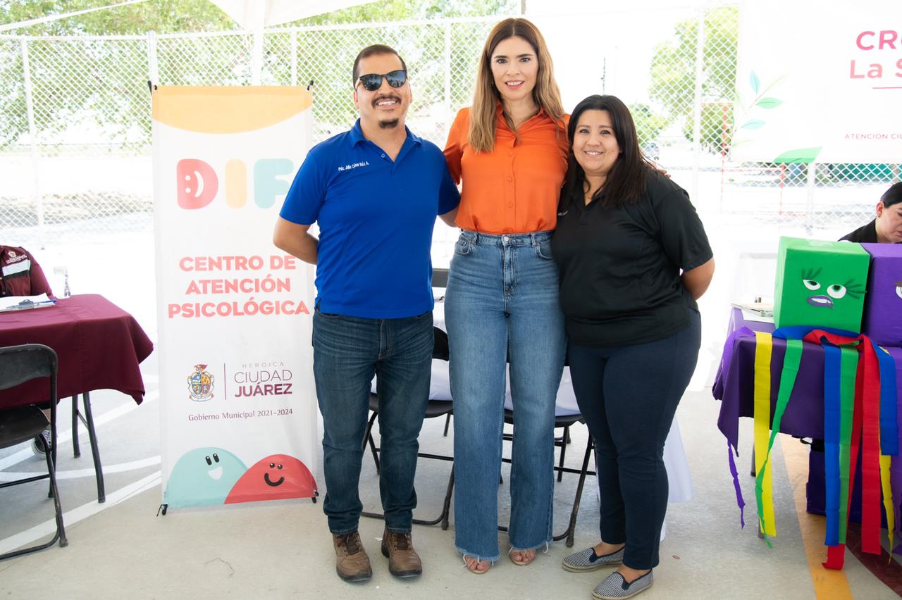 La presidenta para el Sistema para el Desarrollo Integral de la Familia de Juárez, Rubí Enríquez, acudió a la puesta en marcha de la Cruzada por la Salud Mental en la colonia Riberas del Bravo, buscando la cercanía con los vecinos para compartir la relevancia de cuidar y atender el bienestar emocional, psicológico y social e invitarlos a recibir los servicios de alguno de los cuatro Centros de Atención Psicológica (CAP) de DIF.