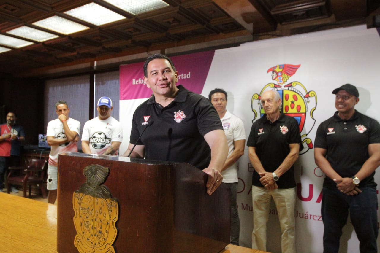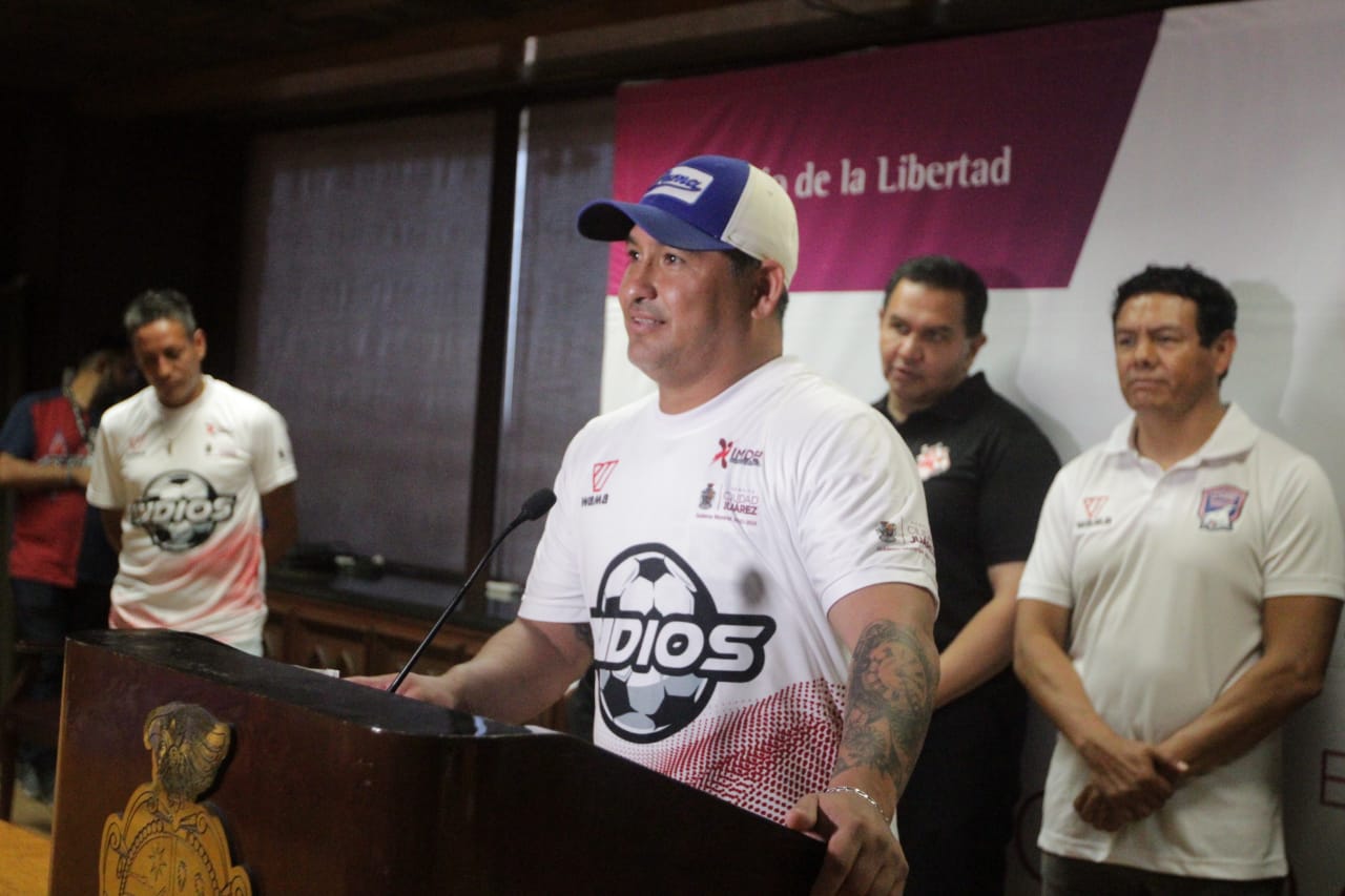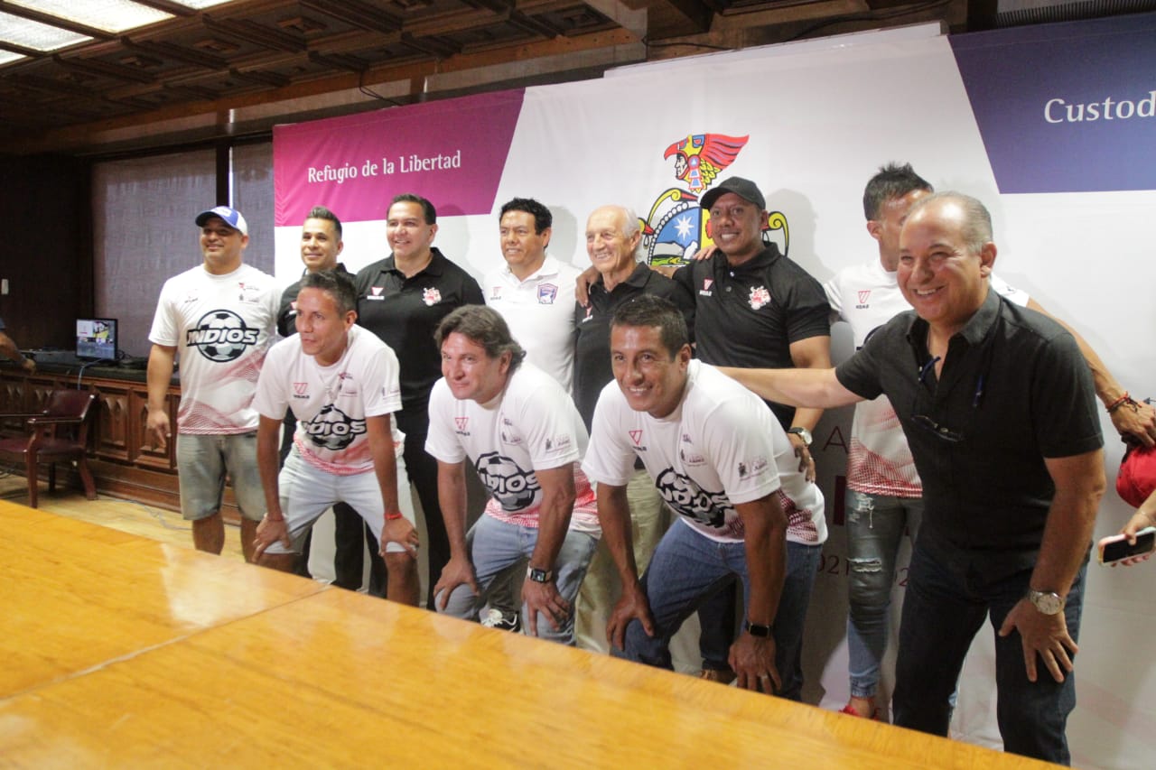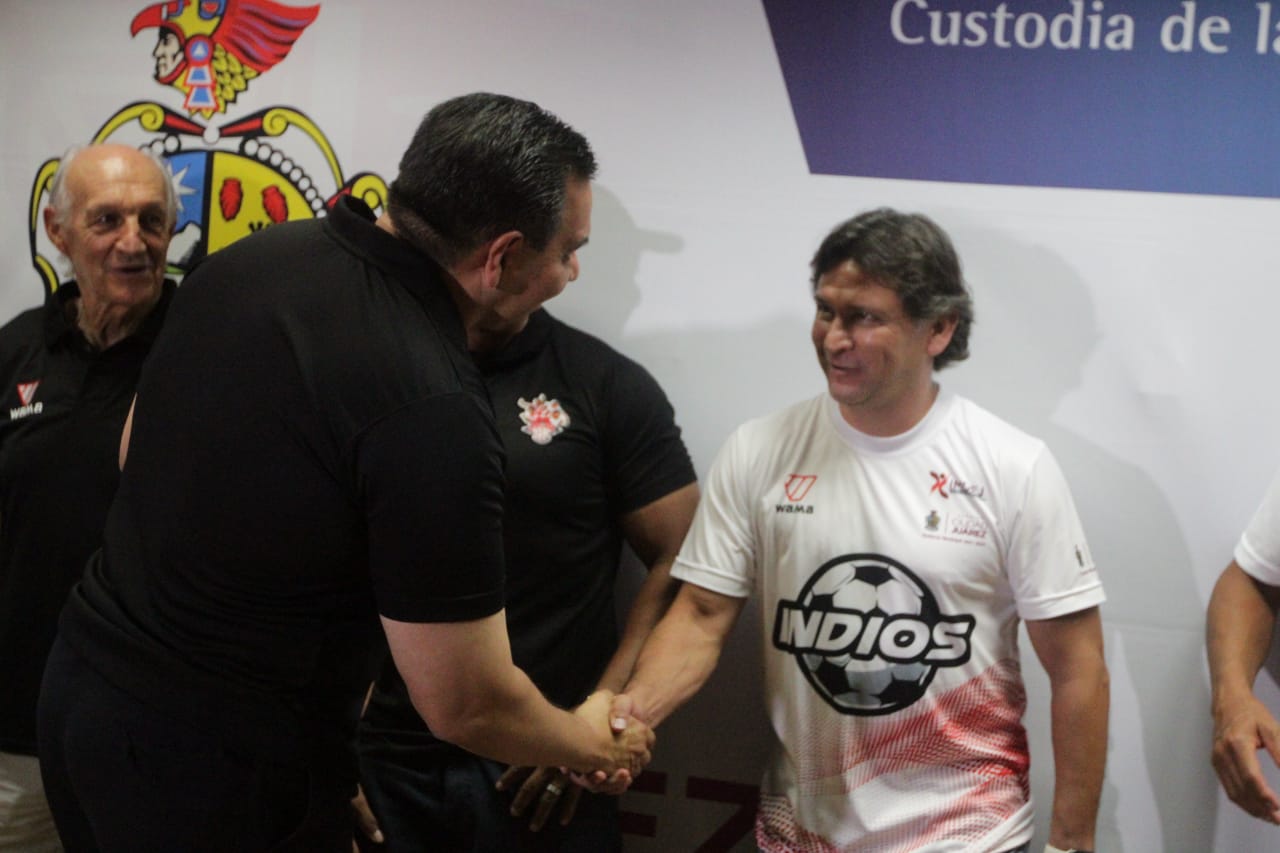El edil fue acompañado por Juan Escalante, director del Instituto Municipal del Deporte y Cultura Física; los promotores Jorge Gáñeme y Francisco Palacios, el ex jugador de Chivas, Joel ??Tiburón? Sánchez y por los ex Indios de Juárez, Edwin Santibañez, Daniel ??Maleno? Frias, Juan Augusto ??Che? Gómez, Manuel ??Tripa? Pérez, Sindey Balderas y el director técnico, Héctor Hugo Eugui.
