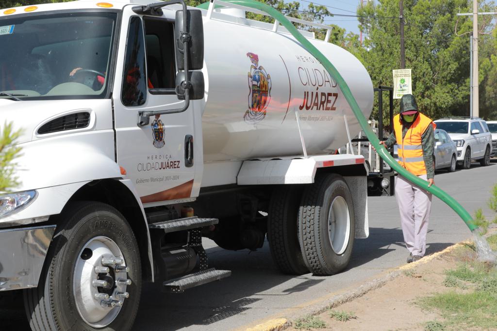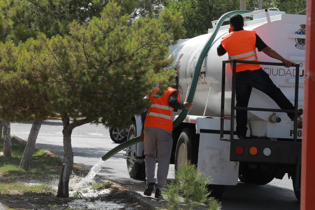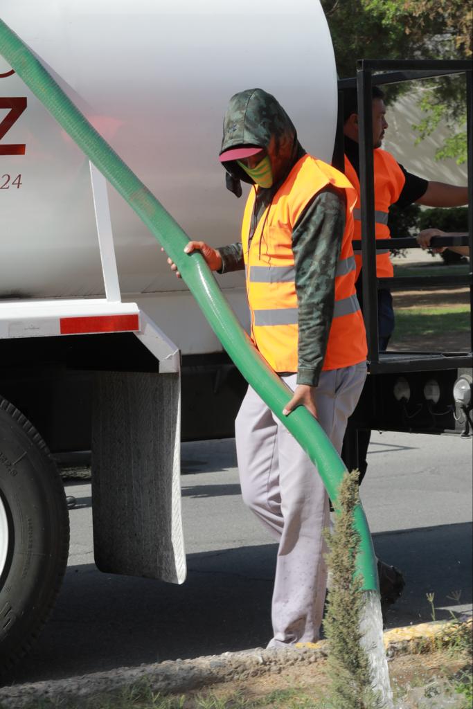 Actualmente, dijo, se mantiene el trabajo de riego de los camellones en distintos puntos de la ciudad y a diario salen las pipas a regar en estos espacios que se encuentran por algunas de las avenidas principales.
