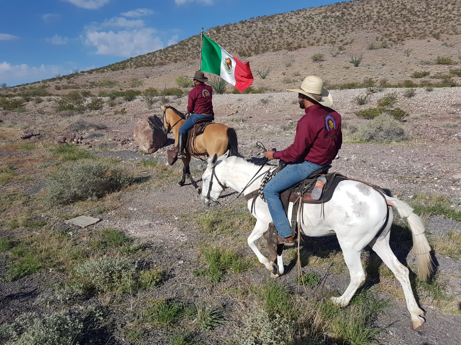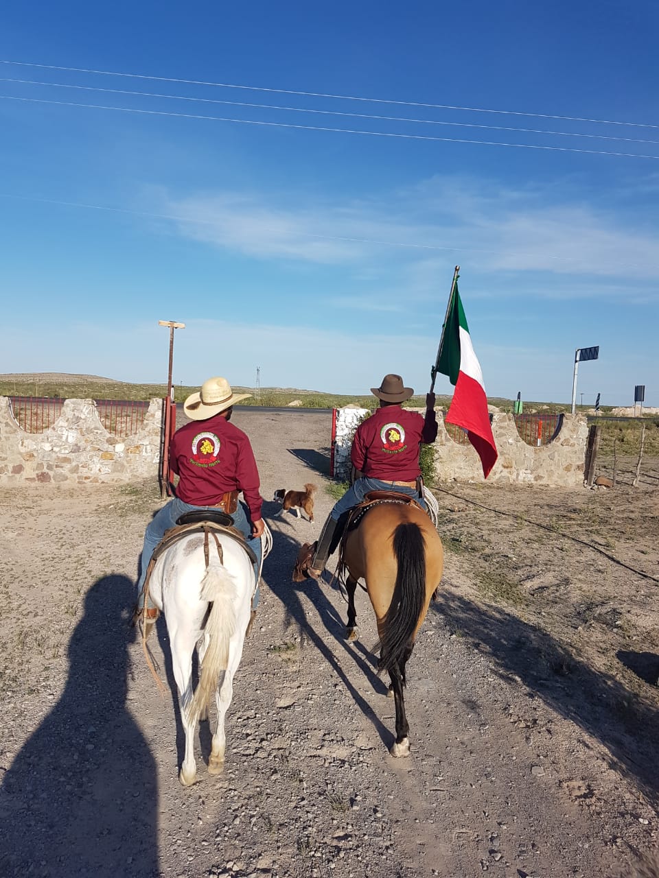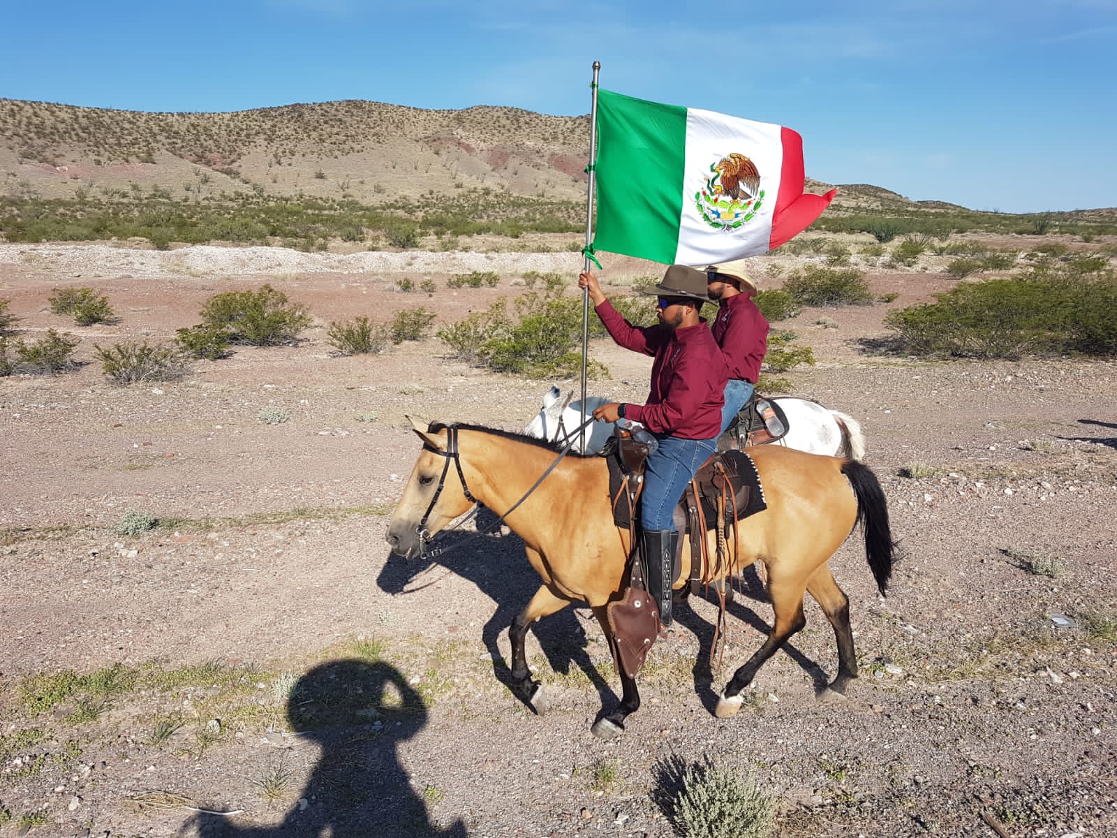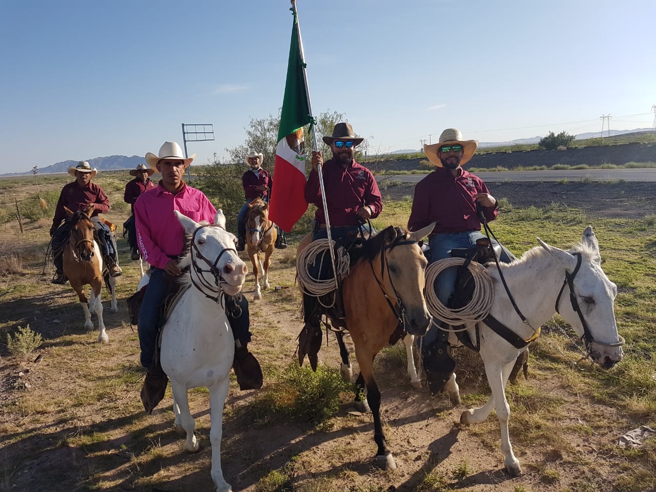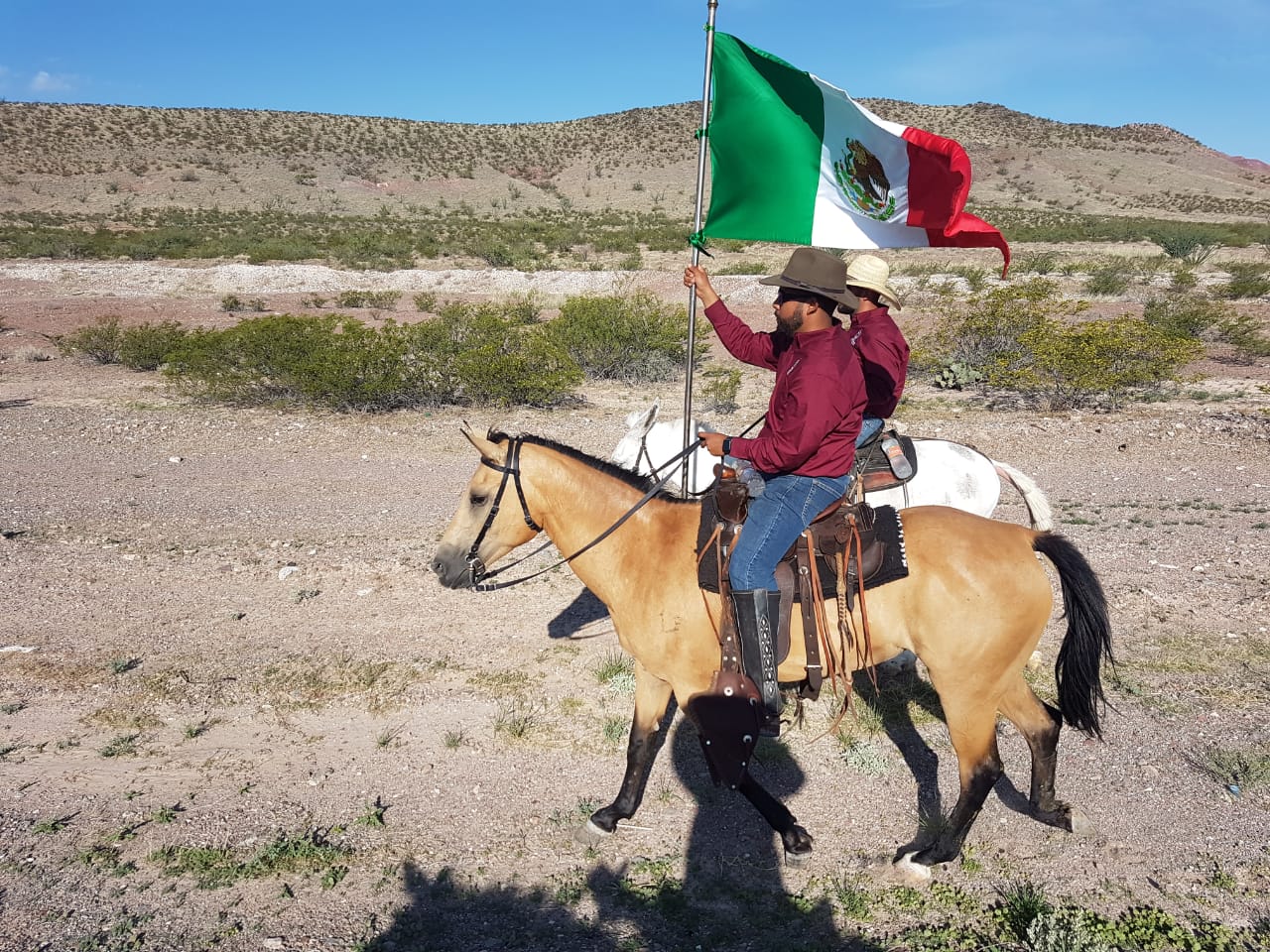 Llevando la Bandera Nacional Mexicana al frente, este día siguió avanzando la Gran Cabalgata Villista.