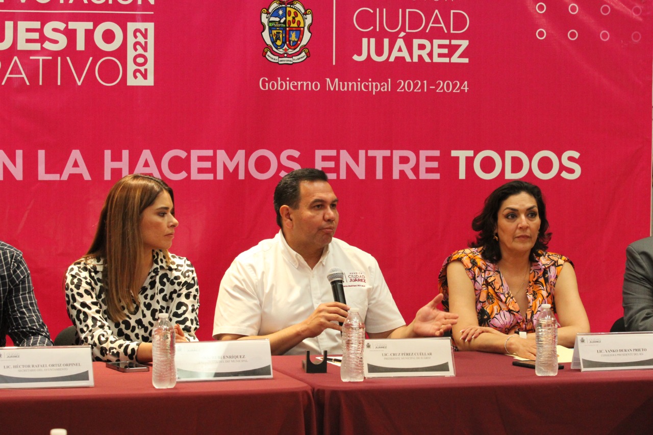 Luego de una jornada de más de nueve horas, el Presidente Municipal, Cruz Pérez Cuéllar, dio por clausurado el proceso de votación del Presupuesto Participativo correspondiente al Ejercicio Fiscal 2022, en el que casi 22 mil juarenses ejercieron su voto.