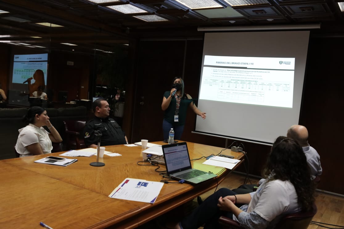 Durante la sesión, la bióloga Janeth Tapia, del área de Vectores y Zoonosis de la Jurisdicción Sanitaria II, dio un informe de avance de acciones del Programa Estratégico contra la Ricketssia llevado a cabo en coordinación con distintas dependencias municipales en Riberas del Bravo.