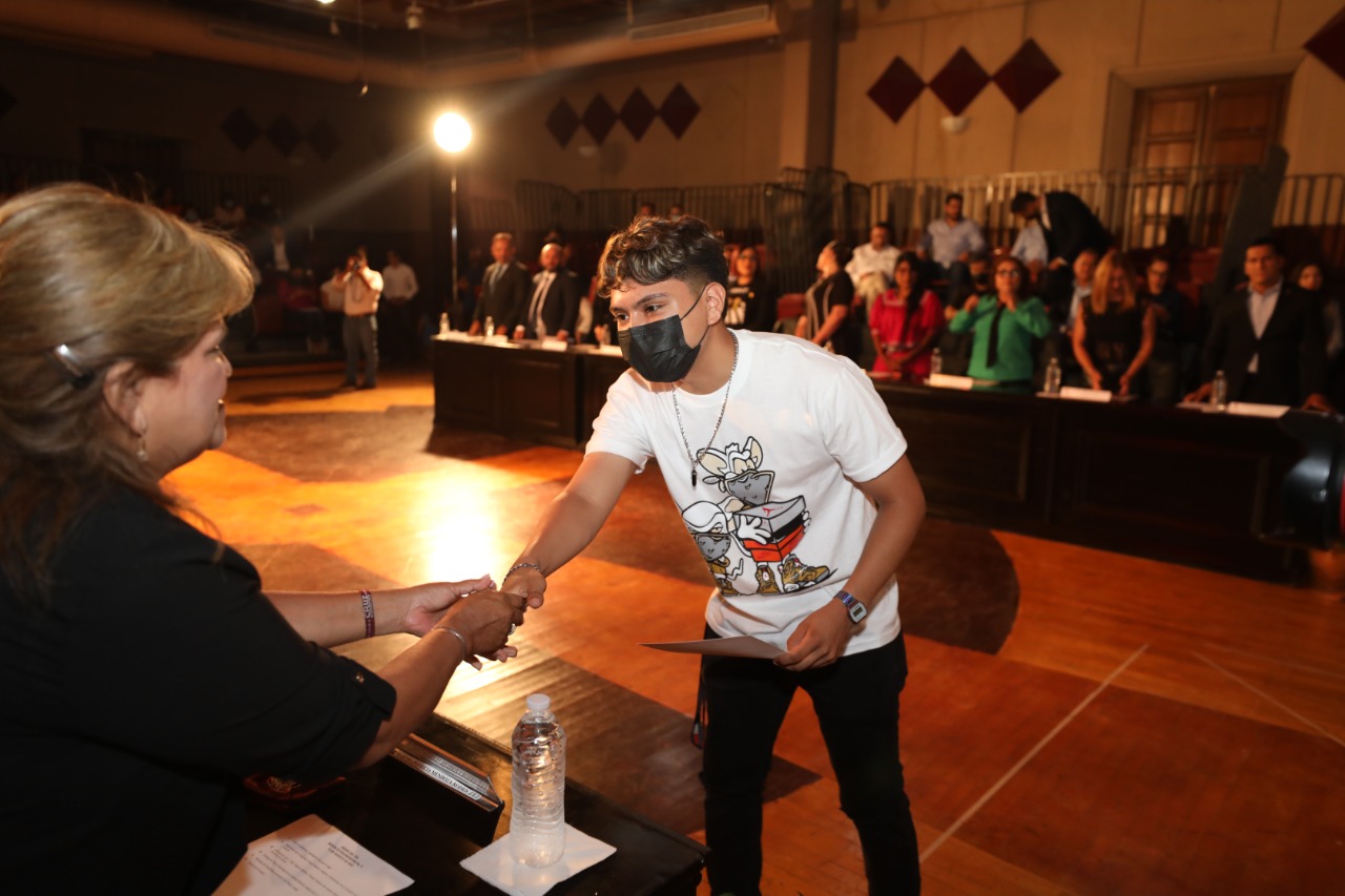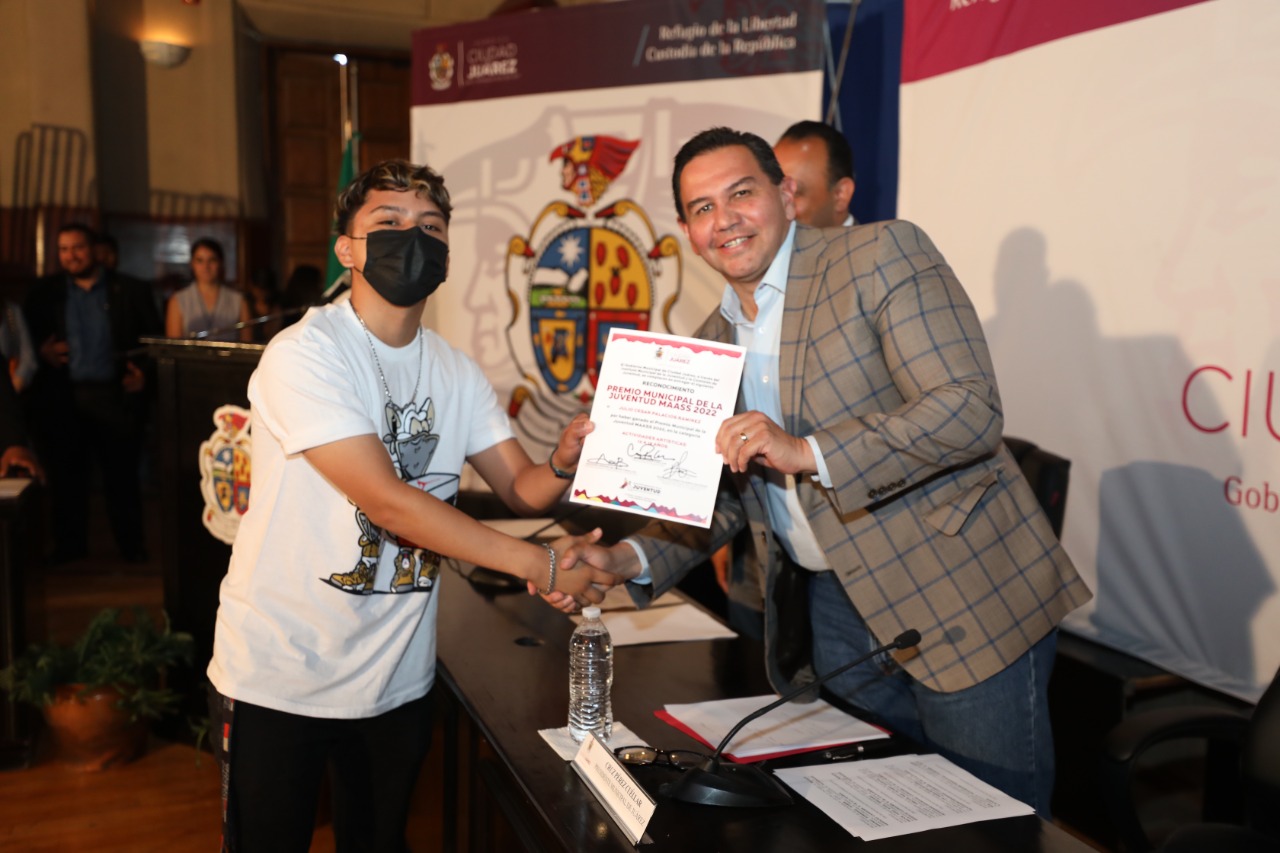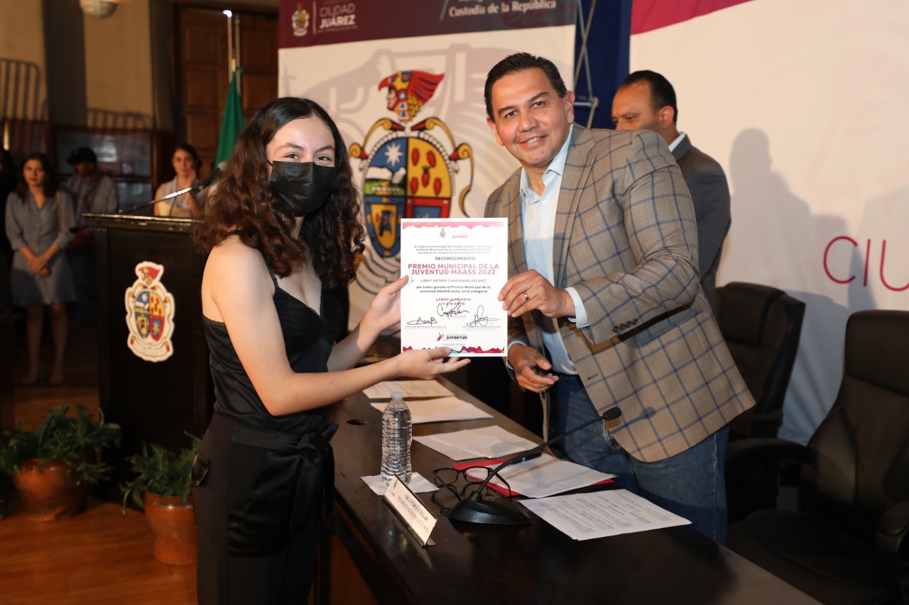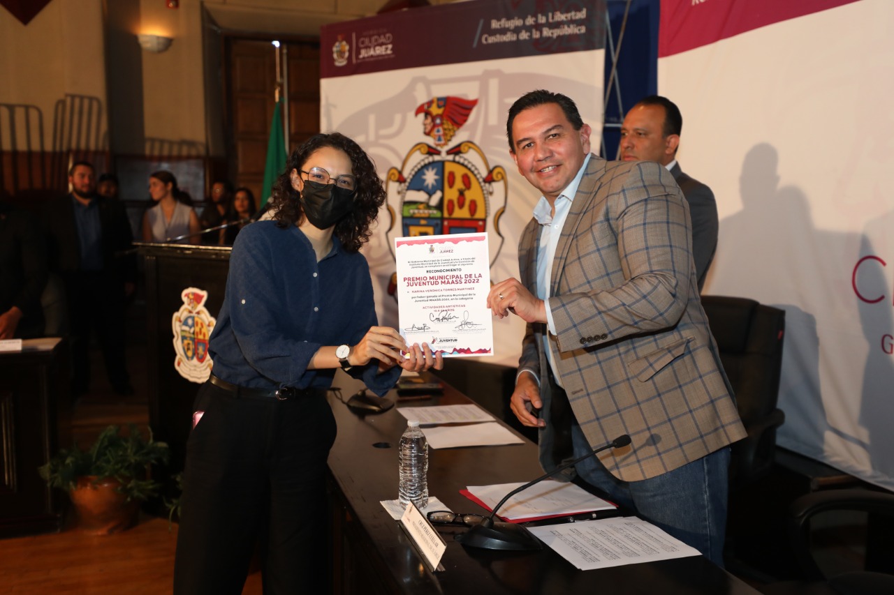 En sesión extraordinaria de Cabildo, el Presidente Municipal, Cruz Pérez Cuéllar entregó este día el Premio Municipal de la Juventud MAASS 2022 a 10 de las y los jóvenes juarenses más destacados en el último año.