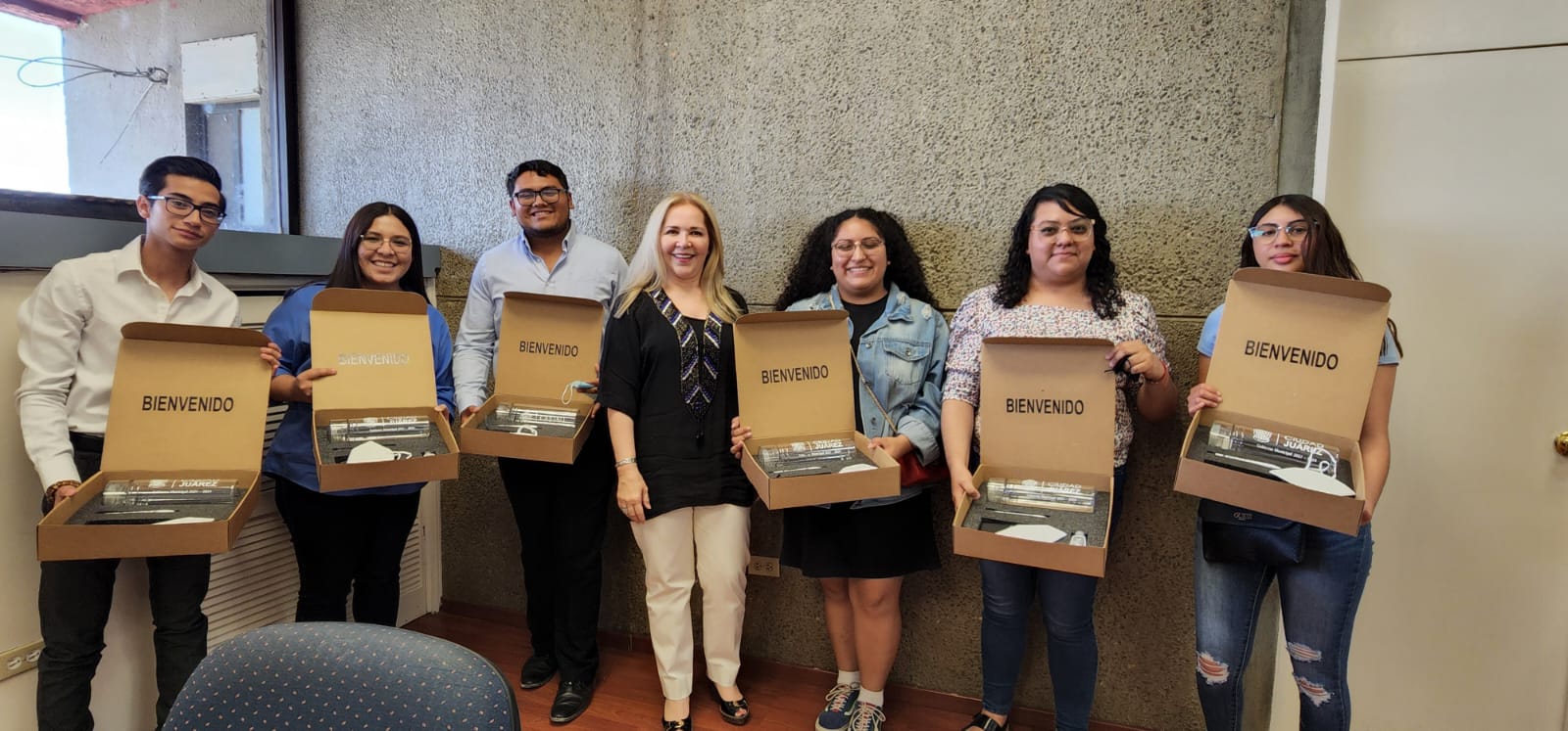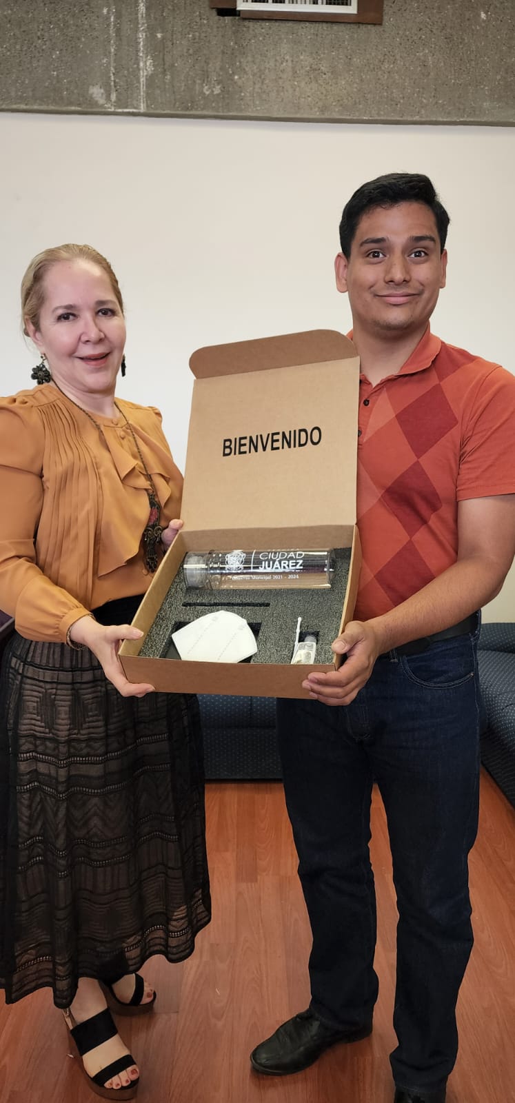Hasta el momento han sido siete los estudiantes de la UACJ que se han interesado para hacer sus prácticas profesionales en el Municipio, quienes reciben una compensación económica y se les entrega un paquete de bienvenida con una libreta, pluma, termo, cubrebocas y alcohol gel.