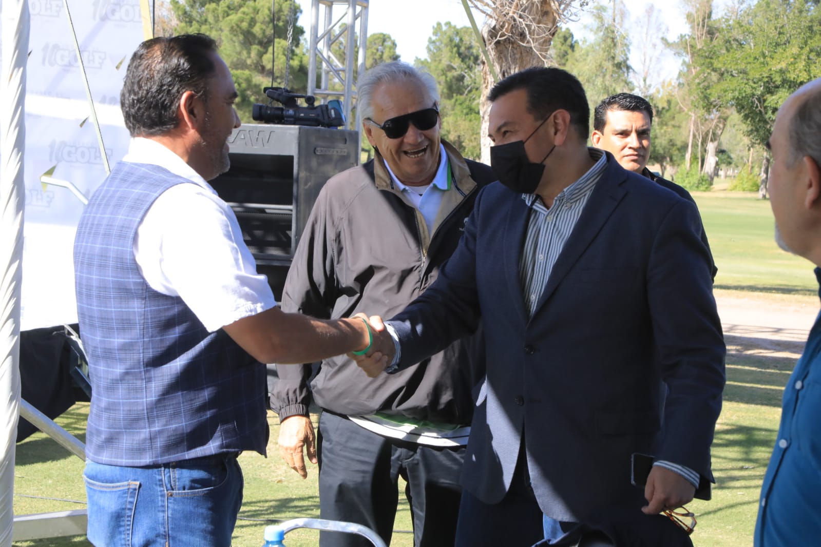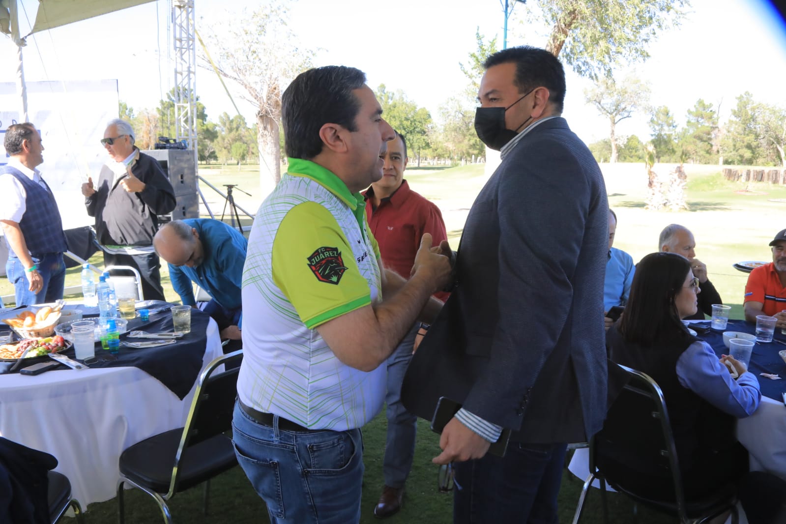 El Presidente Municipal, Cruz Pérez Cuéllar asistió esta tarde al Club Campestre Juárez para convivir con los participantes del Décimo Torneo de Golf organizado por la empresa Televisa, evento que se organiza en el marco de los festejos por el trigésimo aniversario de la televisora en esta frontera.