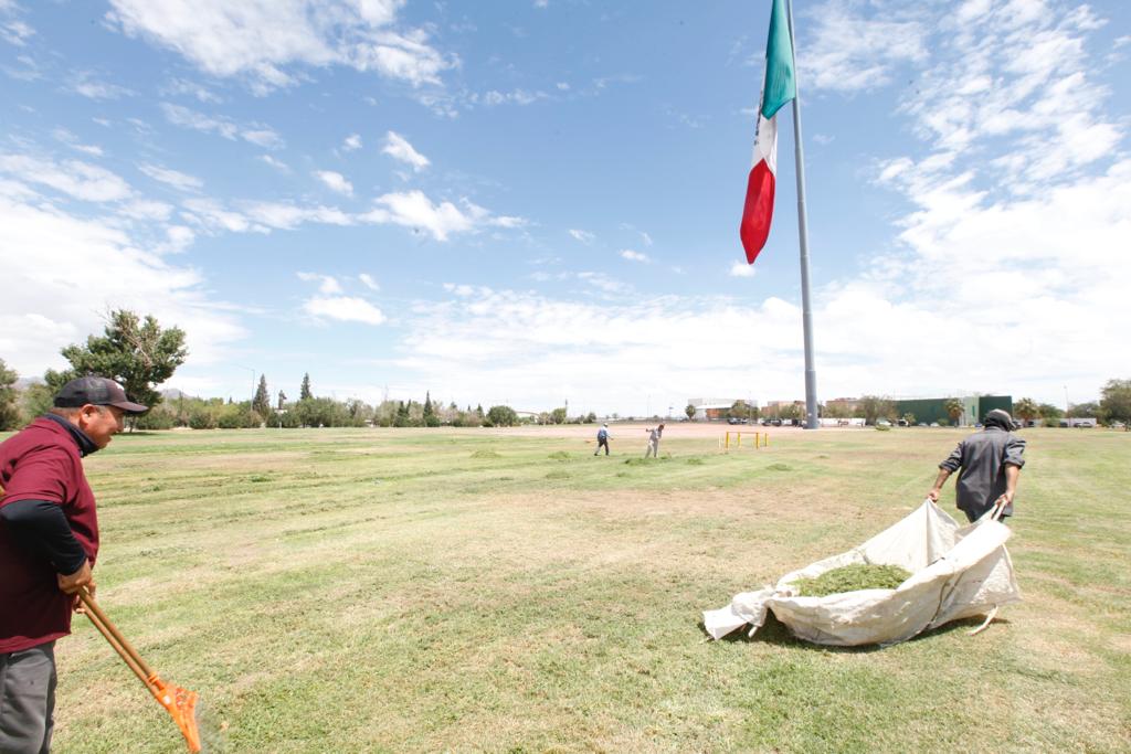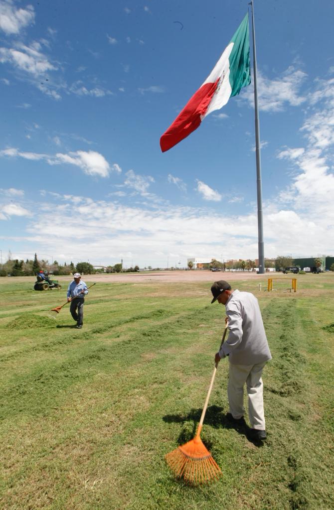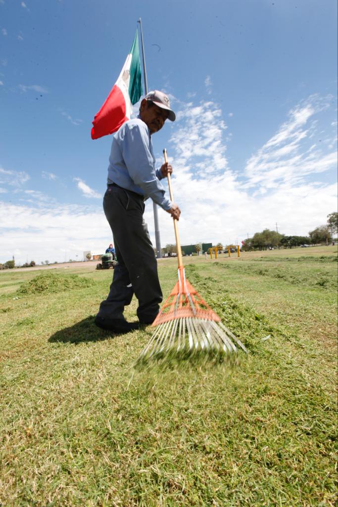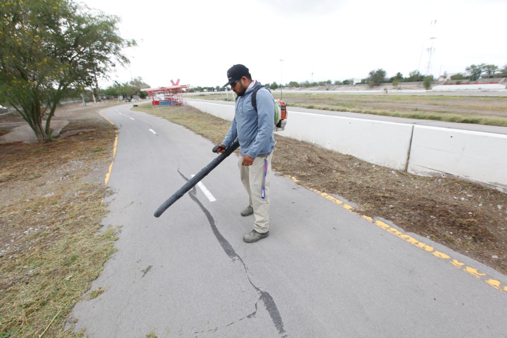 Con labores de limpieza general, personal operativo de la Dirección de Parques y Jardines y de Limpia, trabajaron este día en la ciclovía y en la mega bandera, ambos espacios ubicados sobre la avenida Heroico Colegio Militar.
