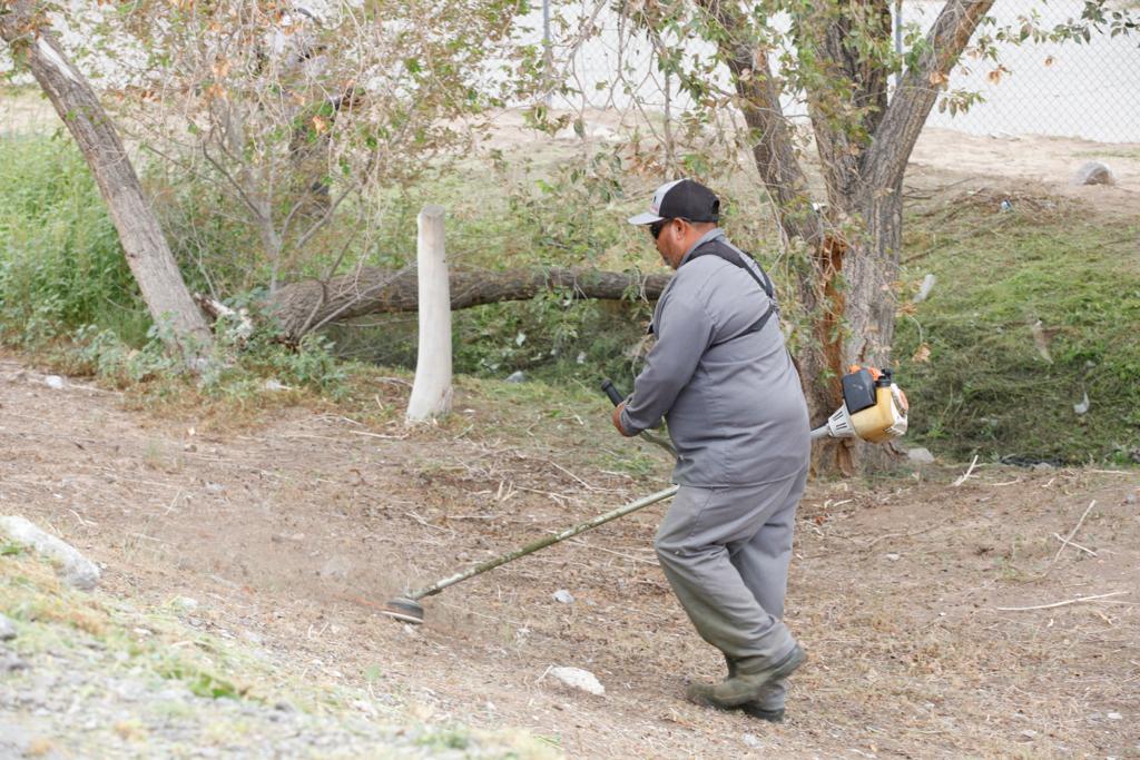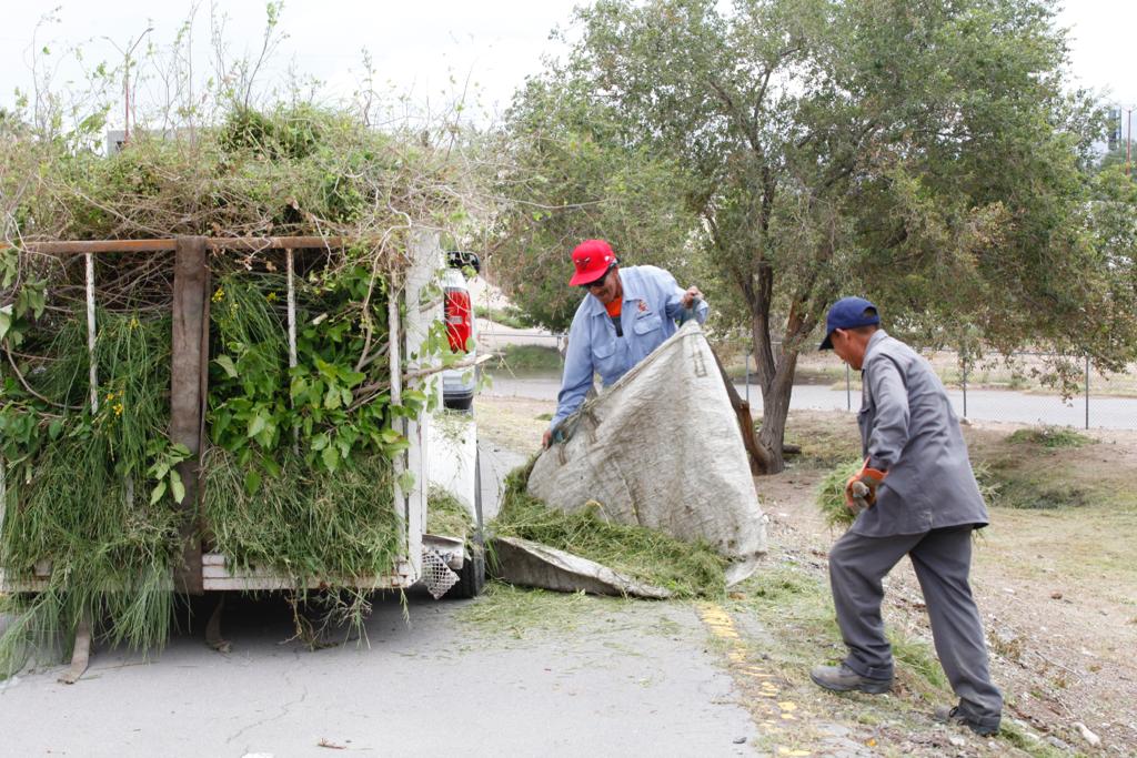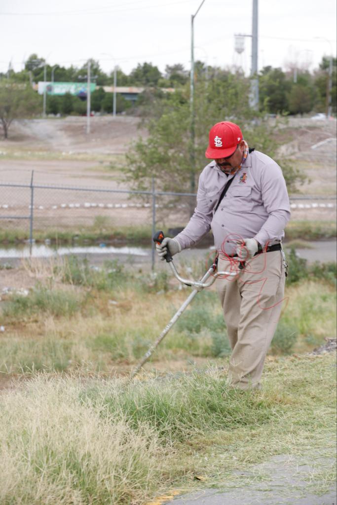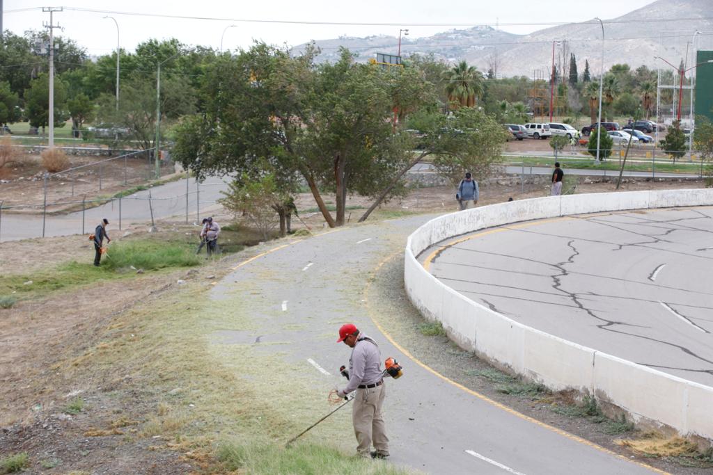 Dijo que con la ayuda de máquinas orilladoras, sopladoras y dos tractores de poda, se efectuaron las labores de limpieza en ambos lugares.