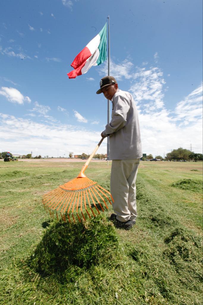 Dos cuadrillas de Parques y Jardines dieron atención a la ciclovía con el retiro de maleza, basura y ramas secas de los árboles que ahí se encuentran, mientras que en la Mega Bandera se llevó a cabo el corte de césped de la explanada, labor que se realizó en conjunto con el equipo de la Dirección de Limpia.