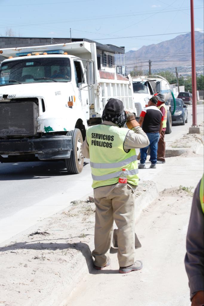 ??Servicios Públicos tiene trabajando alrededor de cinco semanas en esa colonia con sus tres direcciones operativas, Limpia, Parques y Jardines y Alumbrado Público, en donde el principal reto al que se enfrentaron las cuadrillas fue la tierra de arrastre y el rezago en el alumbrado?, comentó.