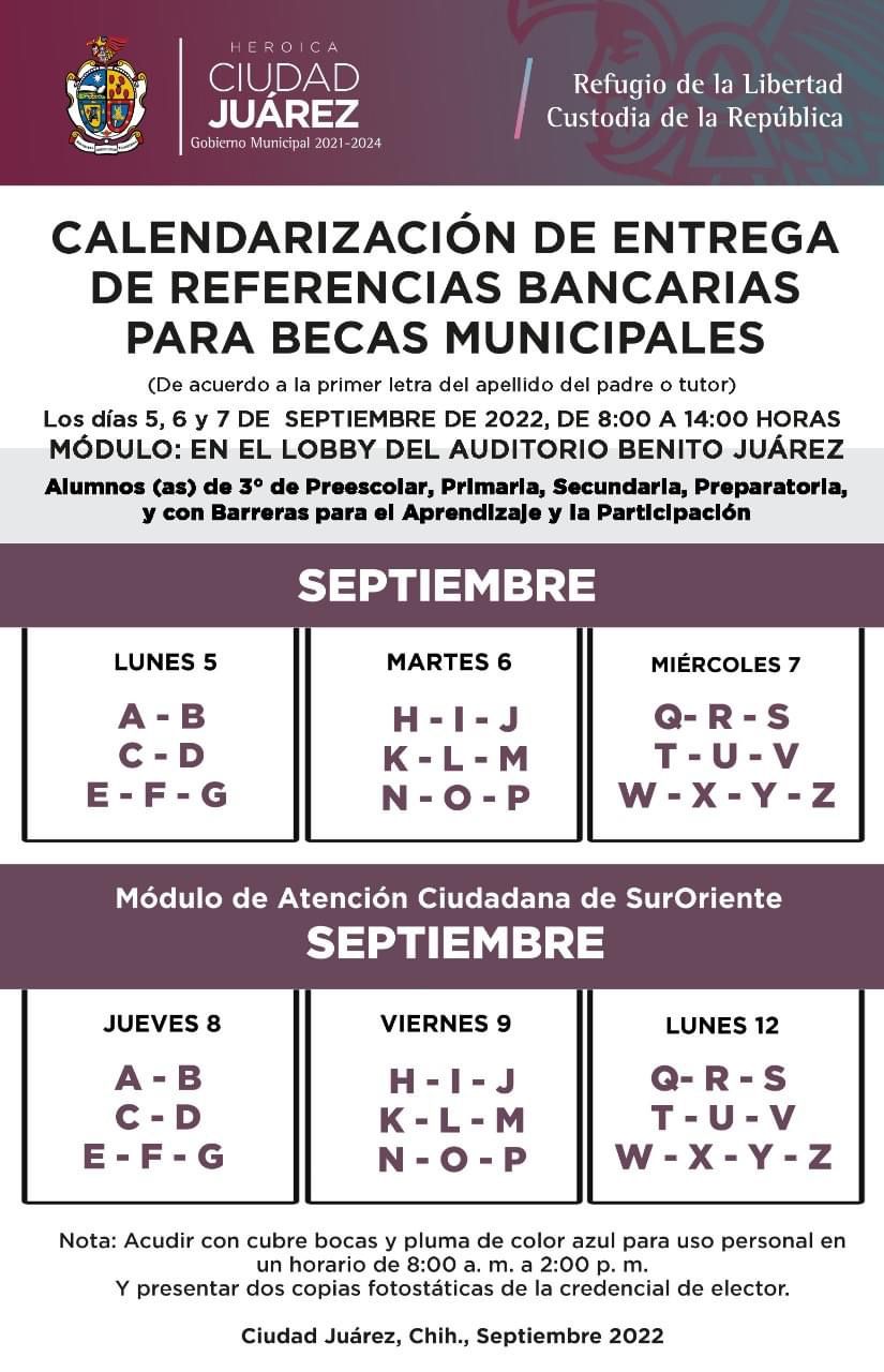Las referencias bancarias forman parte del Programa de Becas Escolares 2022 que otorga el Gobierno Municipal a estudiantes de nivel básico y media superior de escuelas públicas, así como a alumnos con barreras para el aprendizaje y la participación con diagnóstico médico, y en situación de vulnerabilidad.