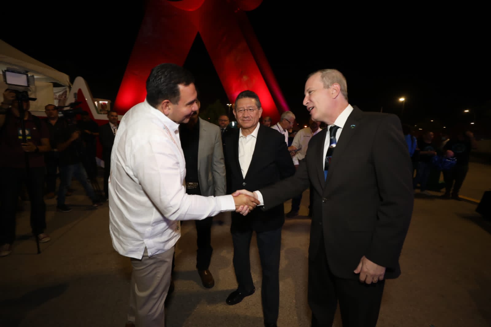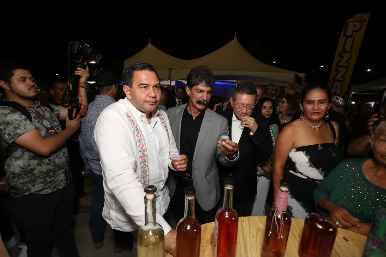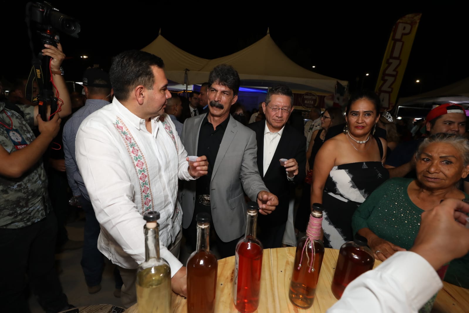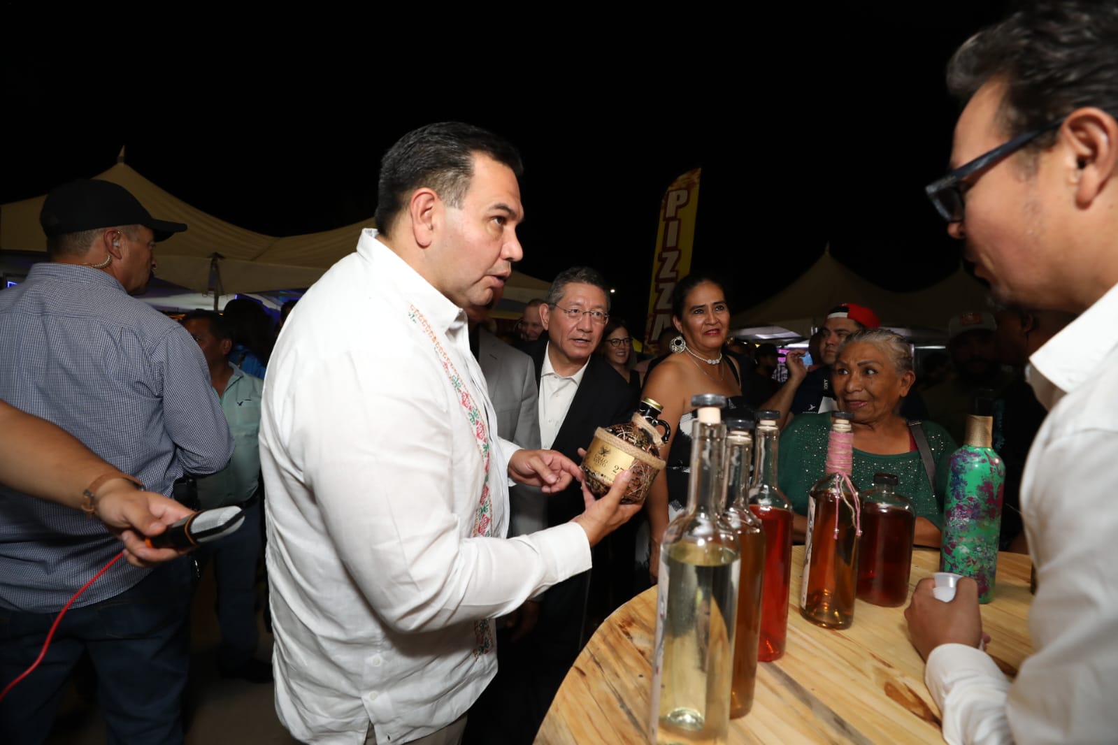 El alcalde hizo un recorrido por los stands y le regaló botellas de sotol elaborado con 27 hierbas medicinales de la casa Gallo Santo a los cónsules de México en El Paso, Mauricio Ibarra y al de Estados Unidos en Juárez, Erick Cohan.