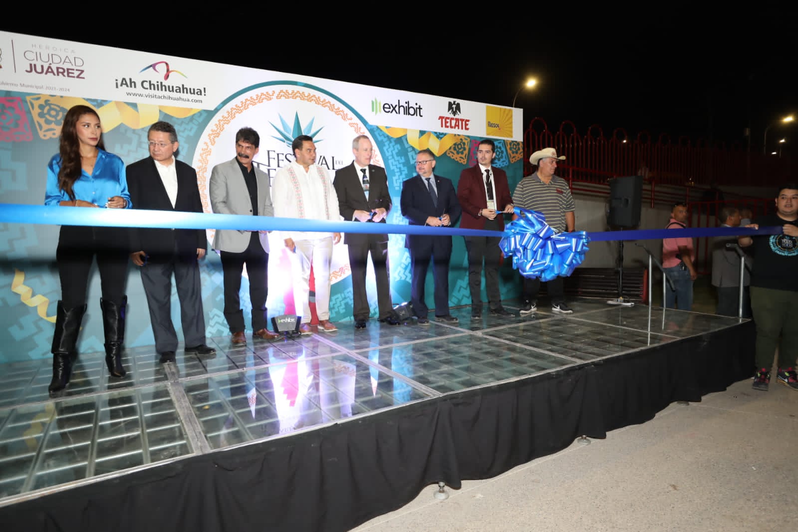 Esta noche el Presidente Municipal de Ciudad Juárez, Cruz Pérez Cuéllar, acudió al corte del listÃn inaugural del Festival del Tequila y del Mariachi 2022, que se celebra en la Plaza de la Mexicanidad.