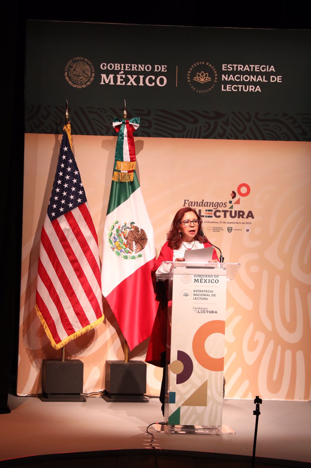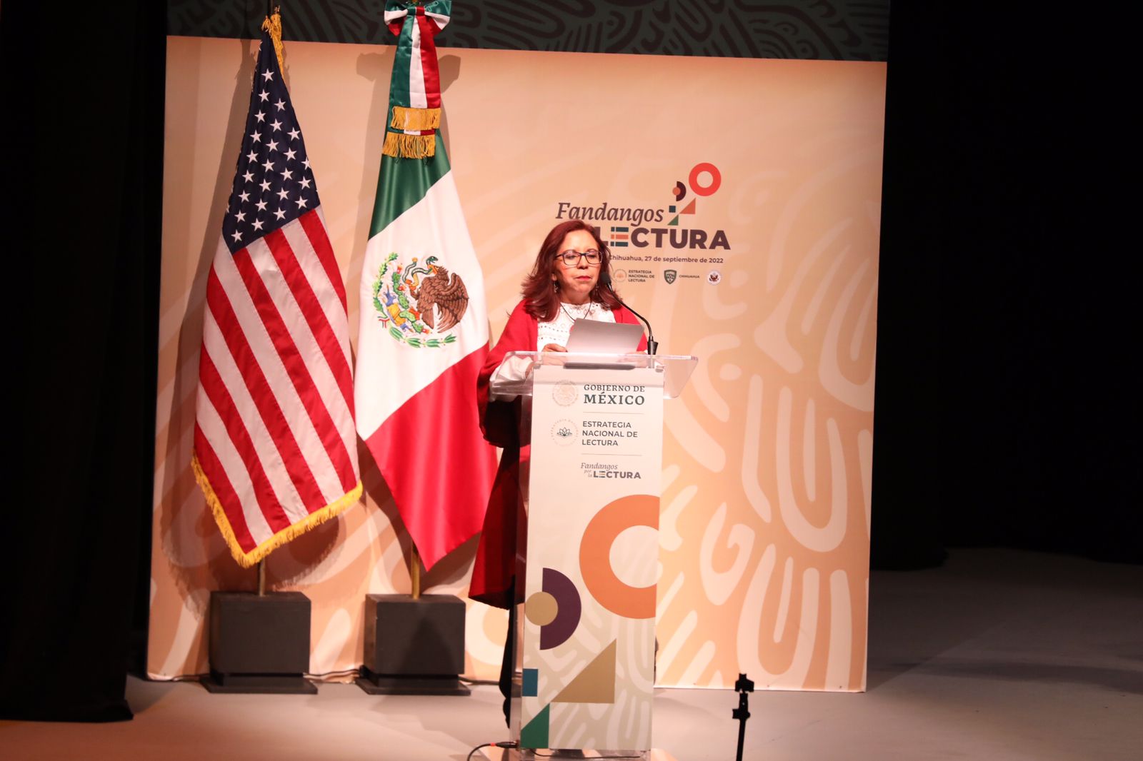 Durante el programa ??Fandangos por la Lectura Chihuahua?, la secretaria de Educación Pública, Leticia Ramírez Amaya, invitó a construir una sociedad lectora a fin de generar diálogos y con ello la transformación del país.