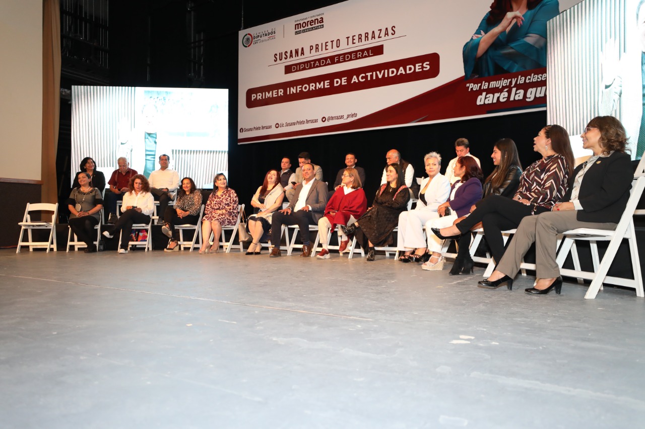 El primer informe de actividades de la Diputada Federal, Susana Prieto se llevó a cabo en el Auditorio Cívico Benito Juárez, donde la integrante del parlamento narró las gestiones que ha hecho para esta frontera, particularmente la reforma a algunas leyes que terminaron en beneficio de adultos mayores y jóvenes sin estudios.
