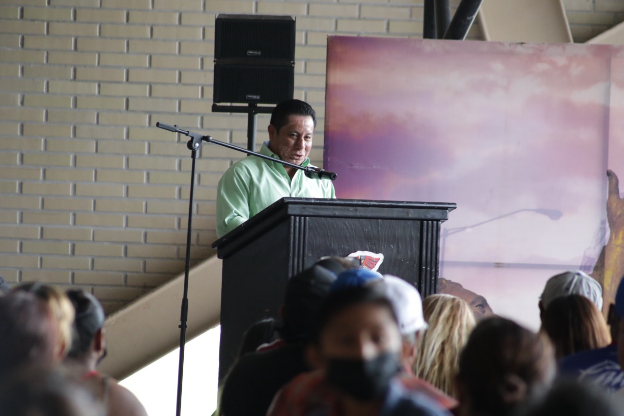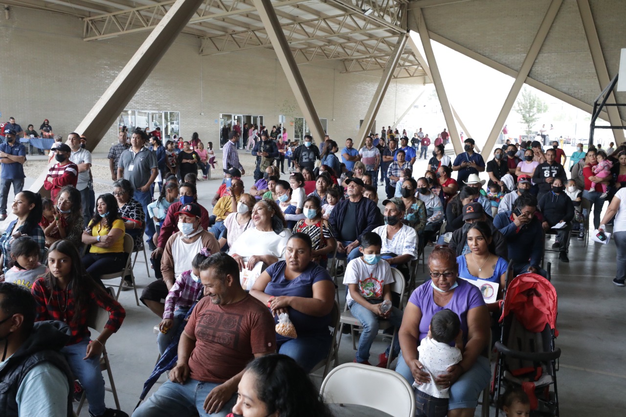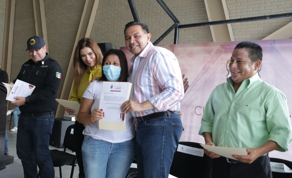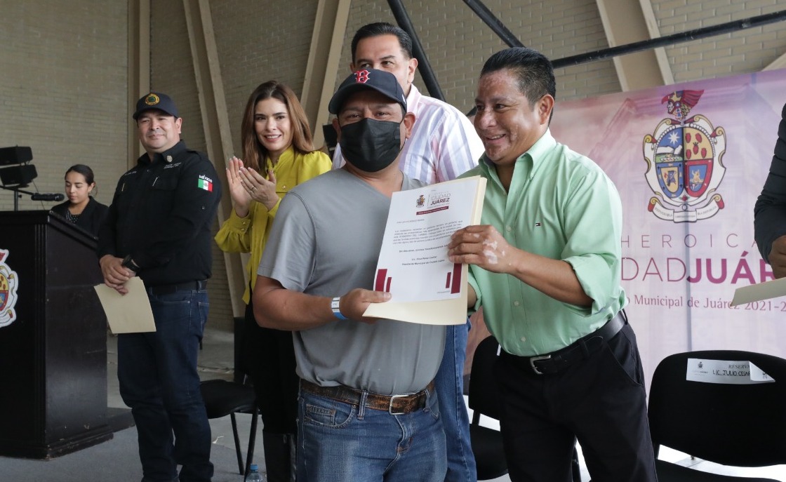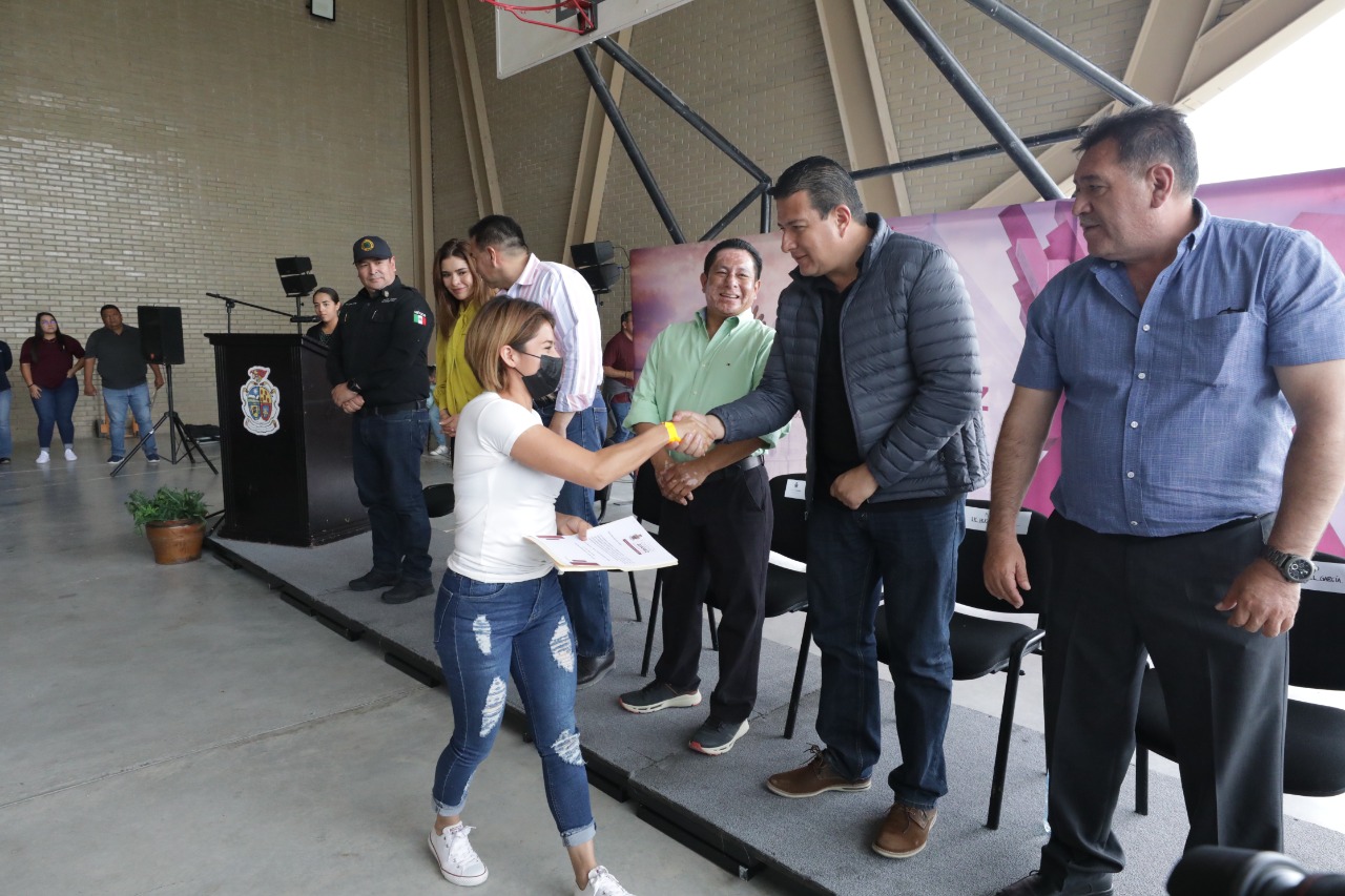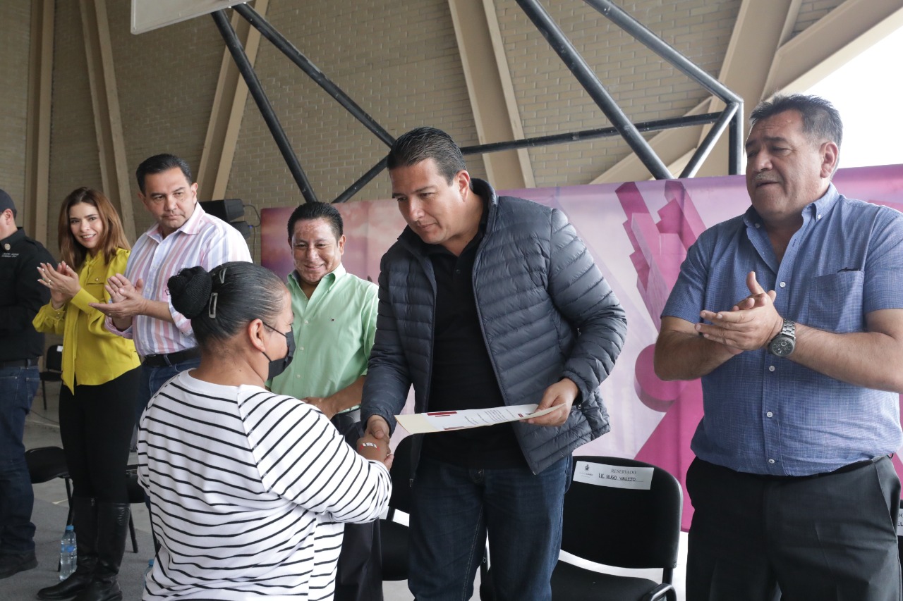 El Presidente Municipal, Cruz Pérez Cuéllar, acudió esta tarde al Polideportivo La Montada, ubicado en la colonia Ampliación Fronteriza, para hacer entrega de 323 cartas de posición y planos catastrales a familias asentadas desde hace más de 4 años en la Colonia Juanita Luna y Ampliación Juanita Luna.