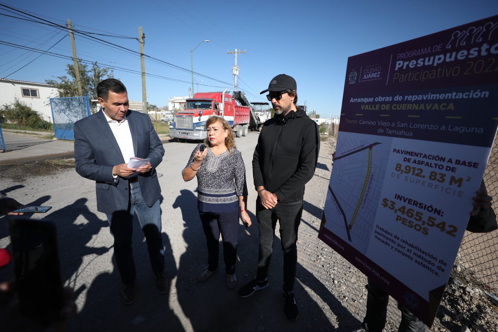 El Presidente Municipal, Cruz Pérez Cuéllar, dio arranque a las obras de repavimentación de la calle Valle de Cuernavaca, en respuesta a las solicitudes de apoyo comunitario que hizo llegar la ciudadanÃa a la administración 2021-2024 por medio del programa de Presupuesto Participativo 2022.