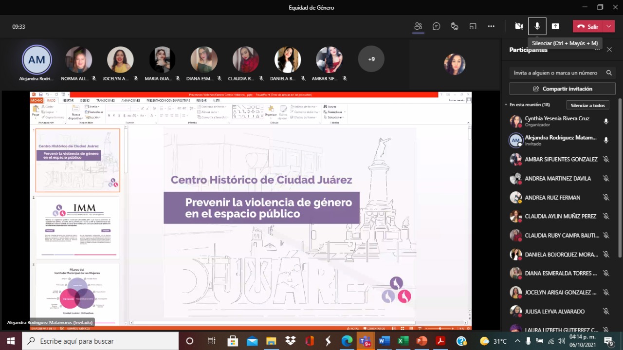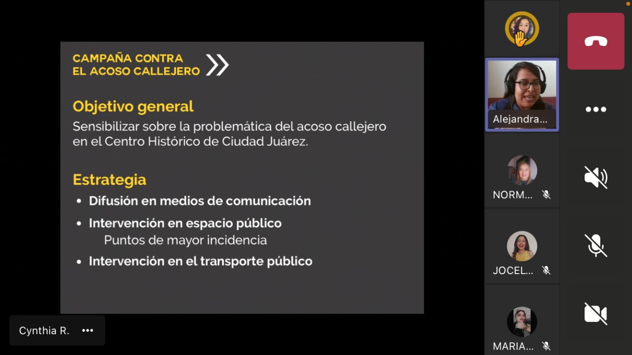 Dentro del Marco del Día Naranja, el Instituto Municipal de las Mujeres (IMM) presentó parte de los resultados de la investigación sobre acoso sexual callejero, así como la campaña ??Rechazar el acoso callejero también es sana distancia? a estudiantes de la licenciatura en Trabajo Social de la Universidad Autónoma de Ciudad Juárez (UACJ).
