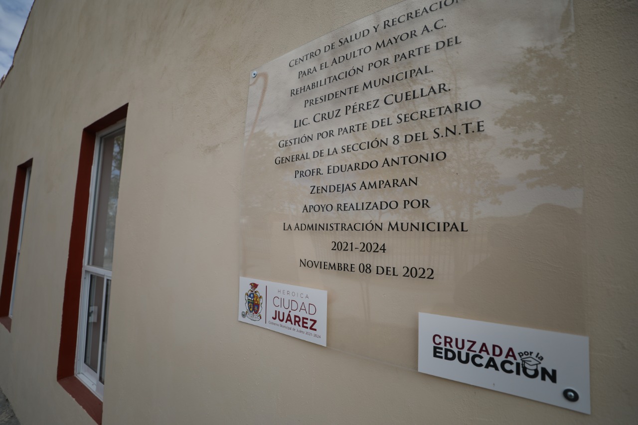 El Presidente Municipal, Cruz Pérez Cuéllar, entregó hoy las nuevas instalaciones de la asociación civil Centro de Salud y Recreación para el Adulto Mayor de la Sección 8 del Sindicato Nacional de Trabajadores de la Educación (SNTE), que beneficia a maestros jubilados.