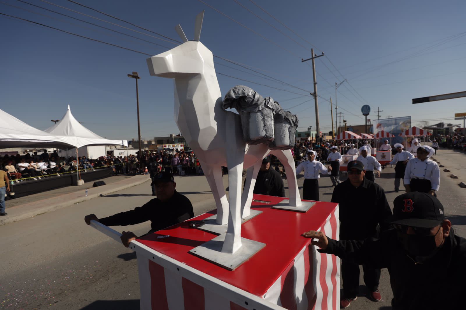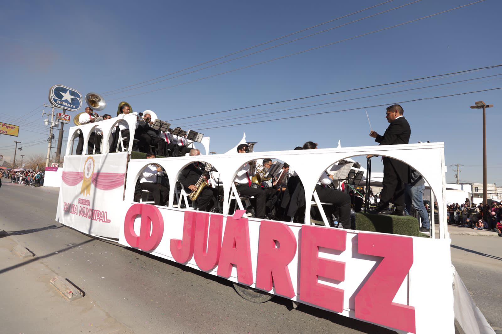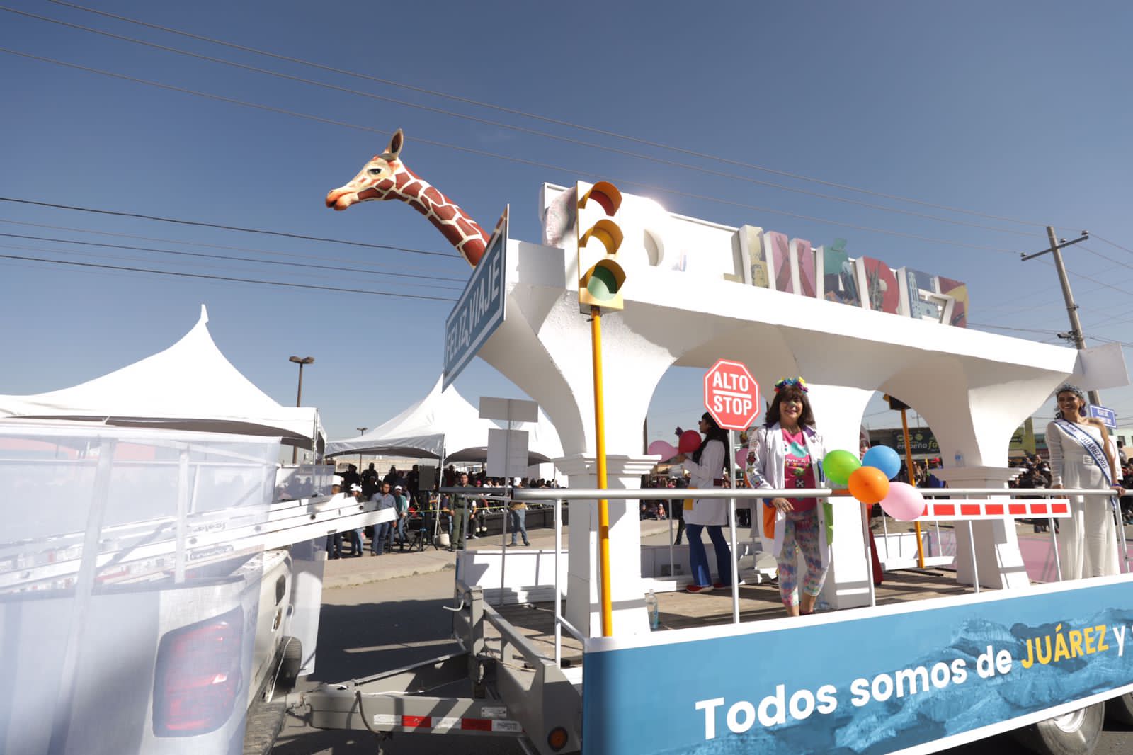 Tras de ellos, apareció el carro alegórico ??Orgullo Juarense? dedicado a los elementos y símbolos más emblemáticos de nuestra ciudad, tal es el caso de la jirafa ??Modesto?, que llegó a la localidad en el 2001 proveniente de Nuevo México, Estados Unidos.