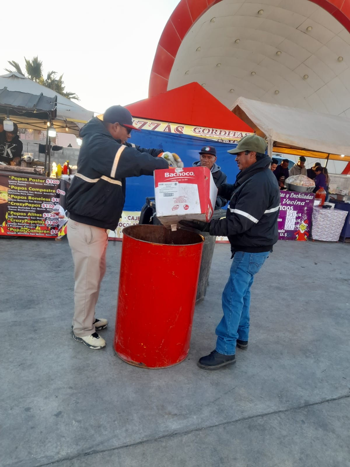 Personal operativo de la Dirección de Limpia atiende diariamente las sedes de las villas navideñas, situadas en la avenida De Las Torres y calle Mitla, en la Plaza de la Mexicanidad y en el Centro Histórico frente a la antigua presidencia municipal.