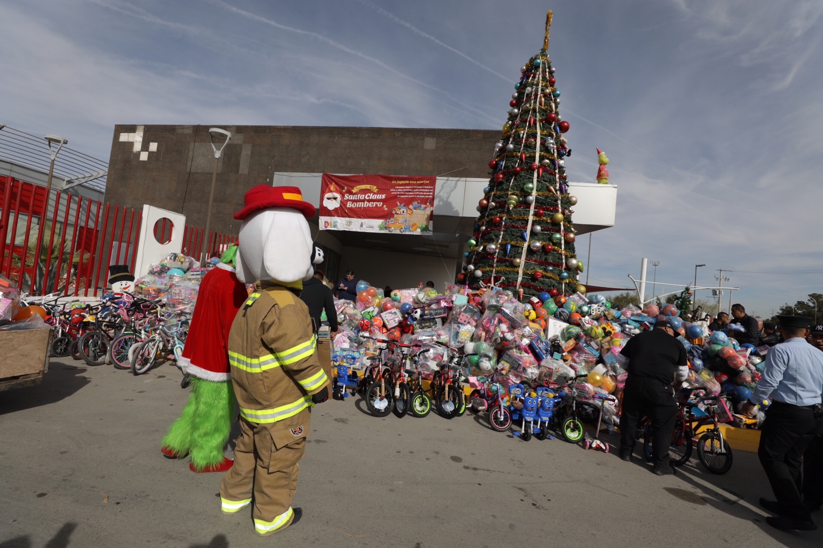 Bicicletas, balones, muñecas, pistas de carros, robots, muñecos de peluche, guitarras, juegos de té, carreolas de juguete, juegos de mesa, superhéroes, cajas de figuras armables, pelotas, entre otros juguetes fueron recibidos por Santa Bombero, Bombocan y El Grinch.