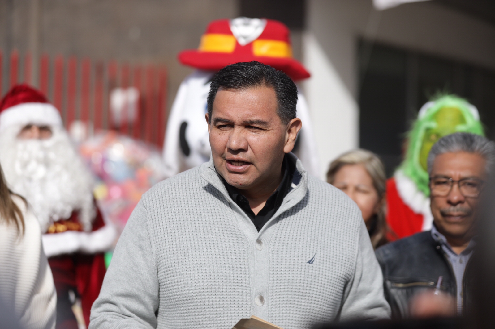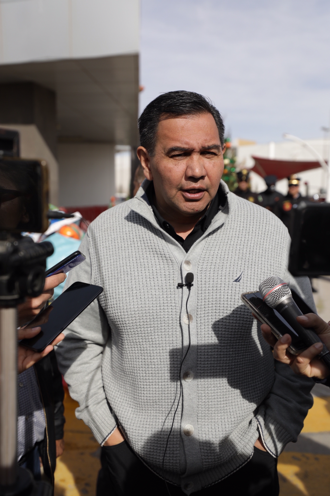 El edil estuvo acompañado en la recepción de la caravana de juguetes, por Rubí Enríquez, presidenta de DIF; Arturo Urquidi Astorga, director de Regulación Comercial del Municipio y Roberto Briones Mota, director de Protección Civil.