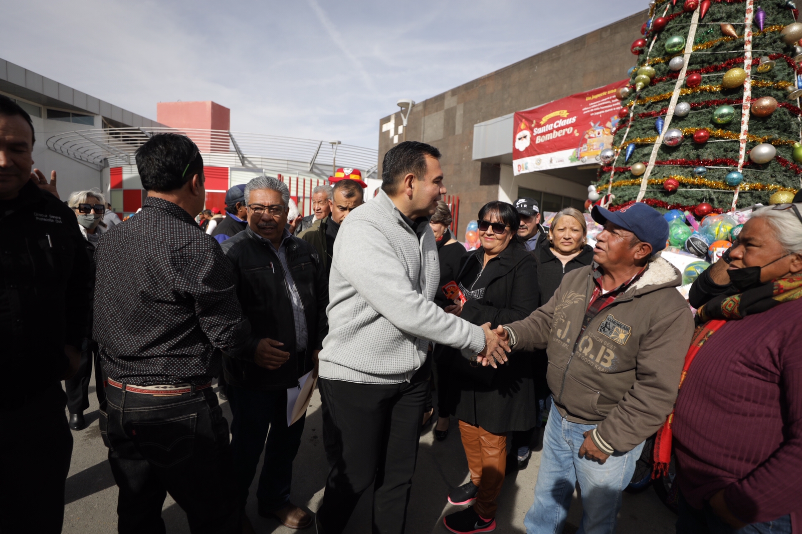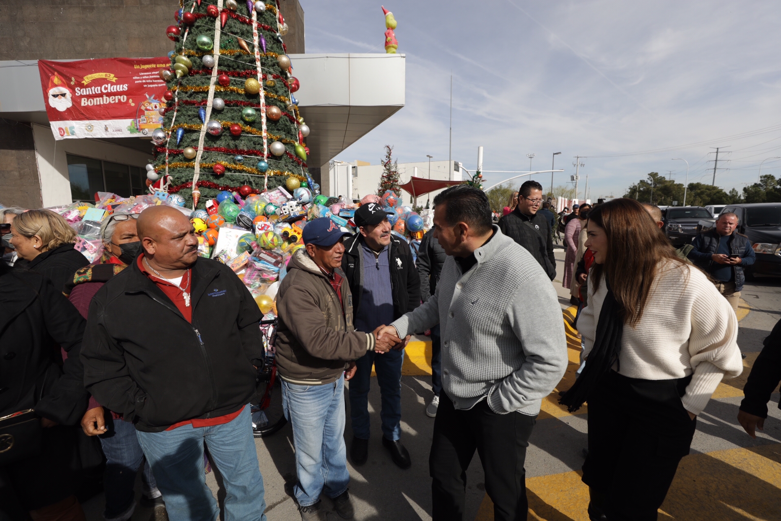 El Presidente Municipal, Cruz Pérez Cuéllar, acompañado de su esposa y presidenta de DIF, Rubí Enríquez, recibió en la Estación Central de Bomberos una caravana realizada por comerciantes de distintos mercados de la ciudad, quienes donaron 9 mil 500 juguetes para la campaña de ??Santa Bombero 2022?.