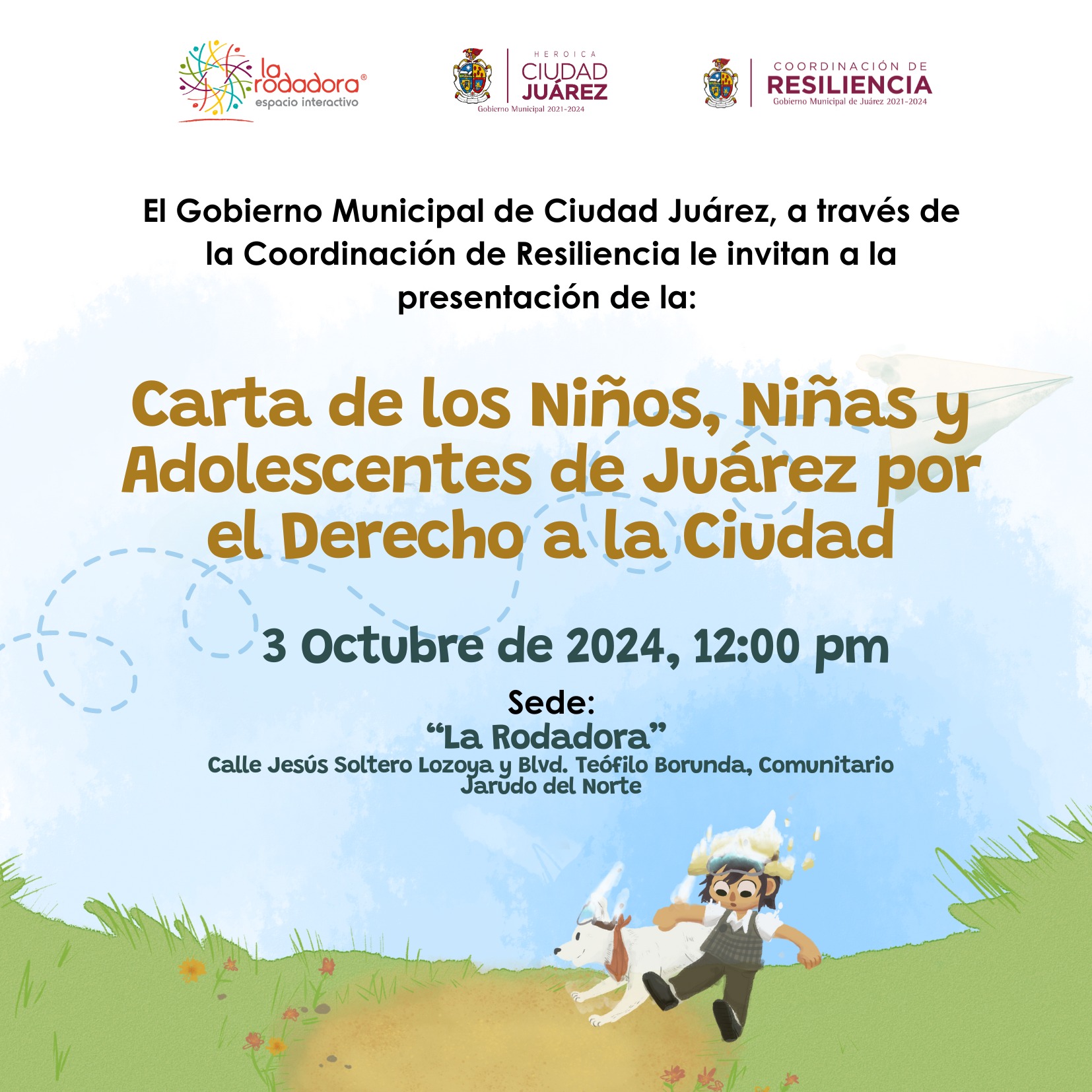 El Gobierno Municipal de Ciudad Juárez a través de la Coordinación de Resiliencia invita a la Presentación de la carta por el Derecho a la Ciudad para Niños, Niñas y Adolescentes.