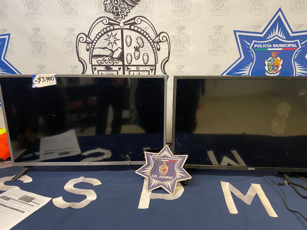 Al arribar al lugar del reporte, los policÃas sorprendieron a dos sujetos saliendo de dicho negocio por donde se encontraba una cortina metálica que previamente habÃan dañado para poder ingresar, cargando una televisión cada uno, procediendo a su arresto.