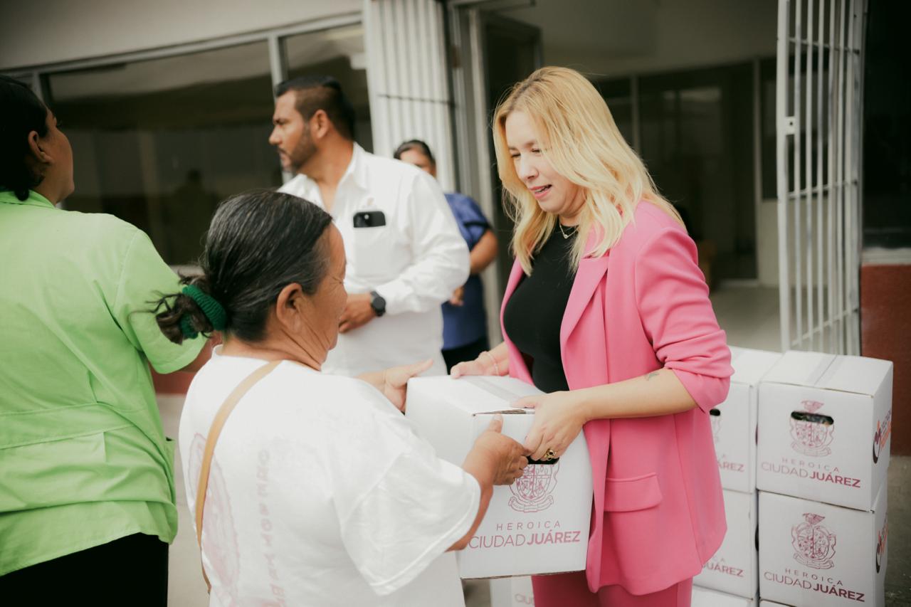 Ana Carmen Estrada García, Síndica Municipal participó en la cuarta edición del programa “Cruzadas por tu Familia”, una estrategia social impulsada por el Gobierno Municipal de Ciudad Juárez que tiene como objetivo apoyar a las familias en situación de vulnerabilidad mediante la entrega de despensas y artículos de primera necesidad.