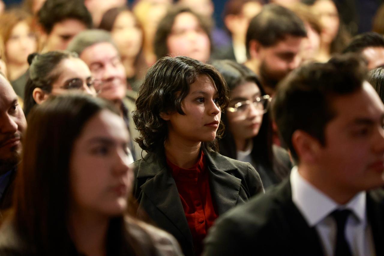 Ana Carmen Estrada dirigió un mensaje a las y los jóvenes integrantes de UNIJUV, en el que destacó la importancia de unir esfuerzos, unir voluntades y unir ideales, subrayando que la fuerza de la juventud radica en su capacidad de organizarse y trabajar en conjunto por el bienestar social de Ciudad Juárez.